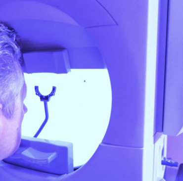 L’examen de champ visuel se déroule en position assise, la tête positionnée face à une coupole blanche servant de support à la projection de mires lumineuses dont la taille, l’intensité et le positionnement varient de façon aléatoire. L’examen est réalisé le plus souvent œil par œil par utilisation d’un cache sur l’oeil non testé).